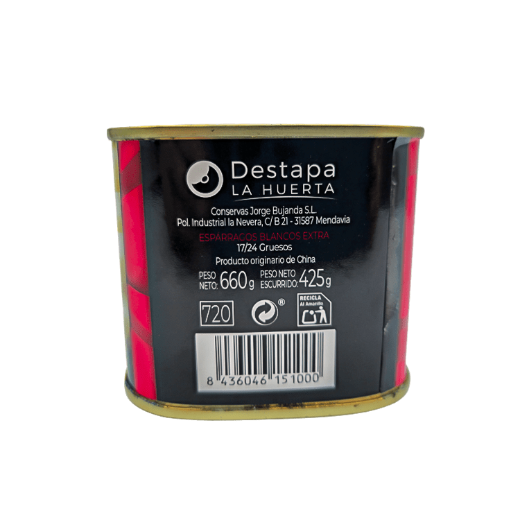 Бели аспержи, вода, сол, захар, антиоксидант: аскорбинова киселина и подкиселител: лимонена киселина.