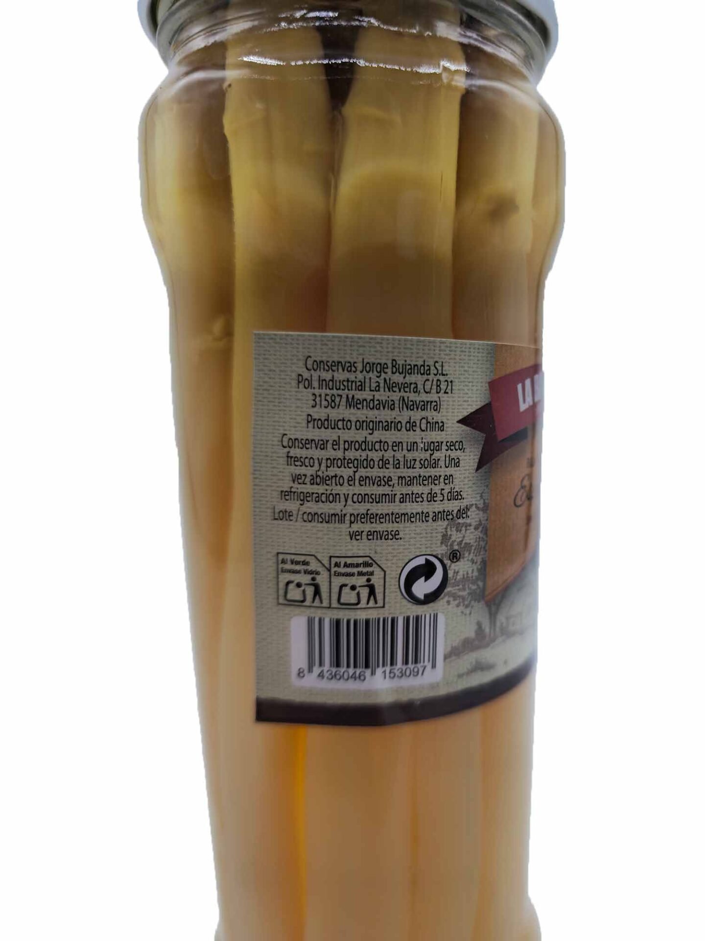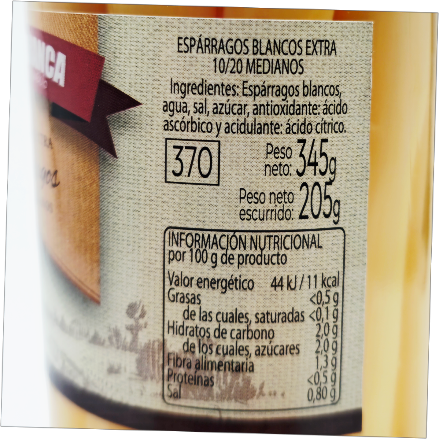 Espárragos blancos, agua, sal, azúcar, antioxidante: ácido ascórbico y acidulante: ácido cítrico.